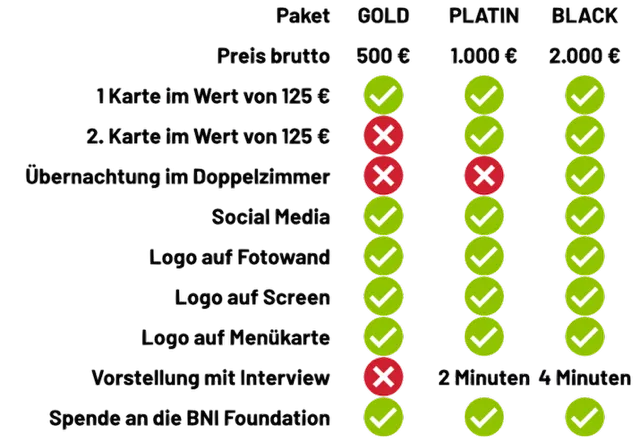Ca. 60 % der Einnahmen aus den partnerpaketen gehen an die BNI Foundation.